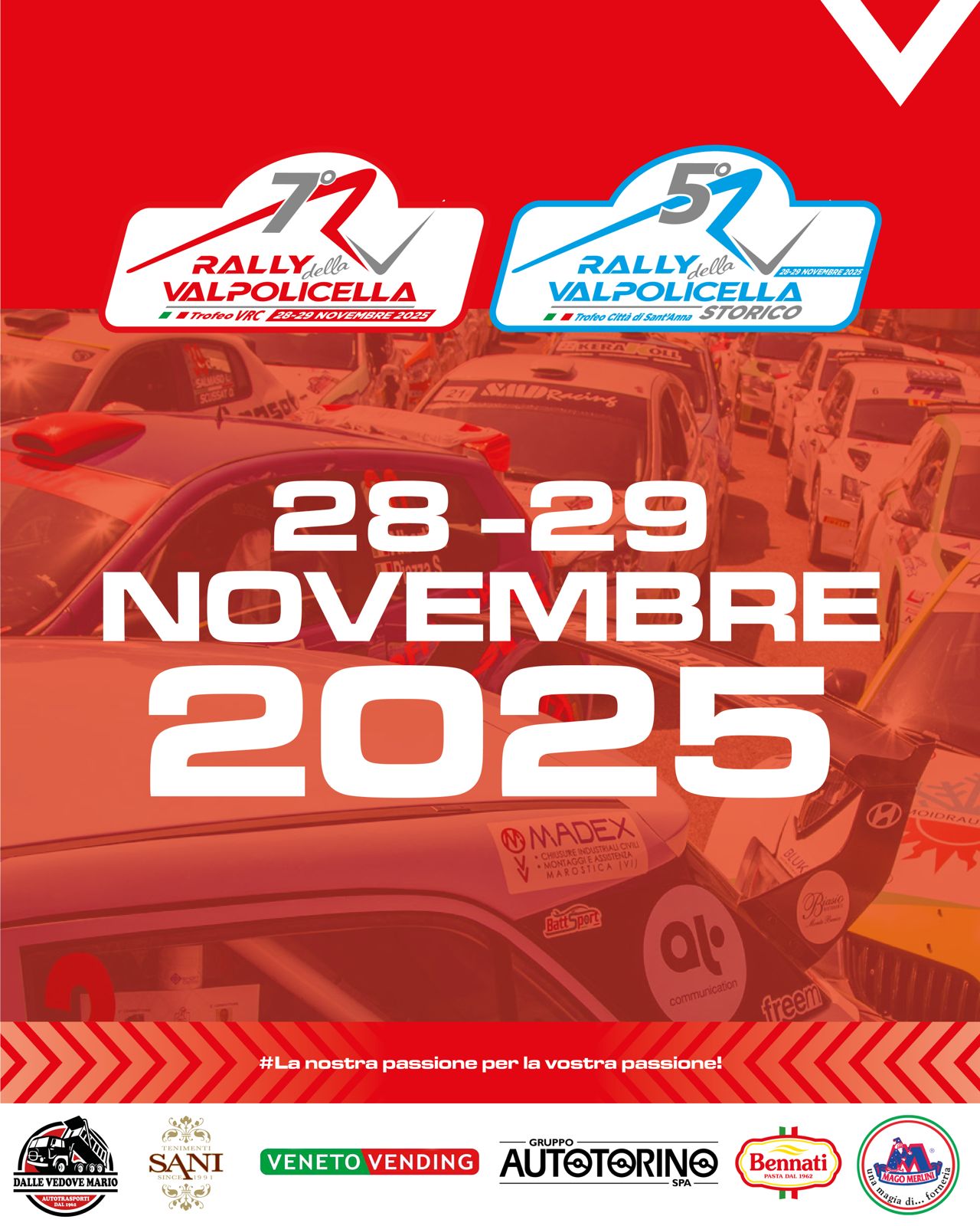 Il Valpolicella Rally Club sta organizzando il "7° Rally della Valpolicella" ed il "5° Rally della Valpolicella Storico", due eventi in uno, che si svolgeranno nel fine settimana del 28 e 29 novembre.